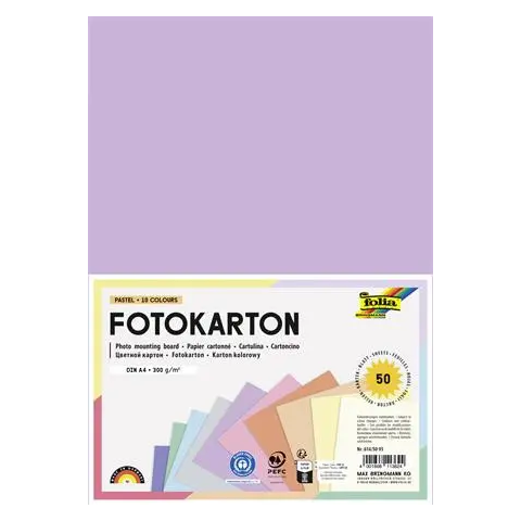 1 kép Folia Dekorkarton, A4, 300 g, 10x5 lap, FOLIA, „Pastel”, vegyes színek