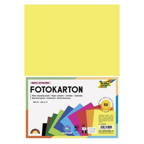 Dekorkarton, A4, 300 g, 10x5 lap, FOLIA, vegyes színek Klasszikus kézműves karton, erős minőség, ideális sokféle kézműves munkához. Kiváló minőség és színek ragyogása, 100% átfestett, gyönyörű, motiváló színek. Gyártó/első EU forgalmazó elérhetősége: