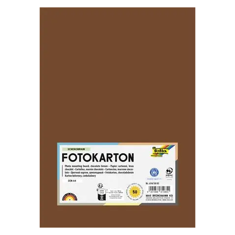 Dekorkarton, A4, 300 g, 50 lap, FOLIA, csokoládébarna Klasszikus kézműves karton, erős minőség, ideális sokféle kézműves munkához. Kiváló minőség és színek ragyogása, 100% átfestett, gyönyörű, motiváló színek. Gyártó/első EU forgalmazó elérhetősége: