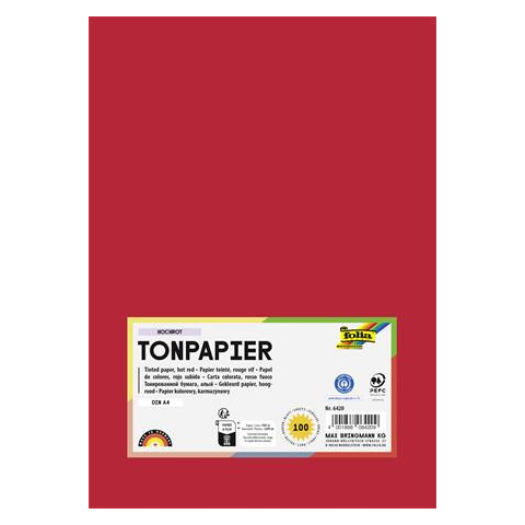 1 kép Folia Színes papír, A4, 130 g, 100 lap, FOLIA, élénkvörös (FL6420)