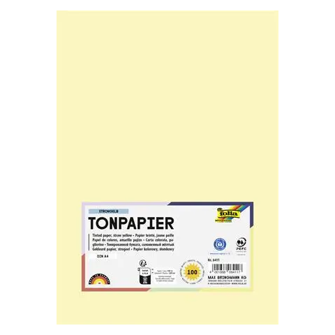 Színes papír, A4, 130 g, 100 lap, FOLIA, szalmasárga -klasszikus színes rajzlap, állandó minőség és ragyogó színek, 100%-ban színezett, gyönyörű, motiváló színárnyalatok Gyártó/első EU forgalmazó elérhetősége: Max Bringmann KG Johann-Höllfritsch-S