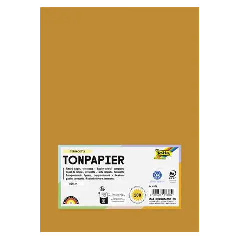 Színes papír, A4, 130 g, 100 lap, FOLIA, terrakotta -klasszikus színes rajzlap, állandó minőség és ragyogó színek, 100%-ban színezett, gyönyörű, motiváló színárnyalatok Gyártó/első EU forgalmazó elérhetősége: Max Bringmann KG Johann-Höllfritsch-St