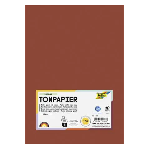 Színes papír, A4, 130 g, 100 lap, FOLIA, vörösesbarna -klasszikus színes rajzlap, állandó minőség és ragyogó színek, 100%-ban színezett, gyönyörű, motiváló színárnyalatok Gyártó/első EU forgalmazó elérhetősége: Max Bringmann KG Johann-Höllfritsch-