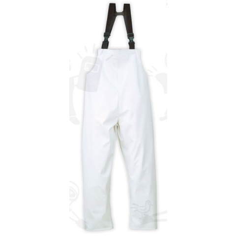 Food mellesnadrág, - gumis vállpánttal, bellső mellzsebbel, szűkíthető bokarésszel FOOB - 210g/m2 vastag 40% poliuretán és 60% poliészter összetételű alapanyag fehér színben - hegesztéssel vízhatlanított varrás - könnyű, de erős, jó hőszigetelő védőru