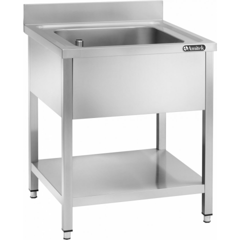 1 Medencés mosogató, alsó polccal, inox 304 kivitel, szintezhető lábakkal. Mérete:800x700x950 Medence méret:500x600x300