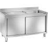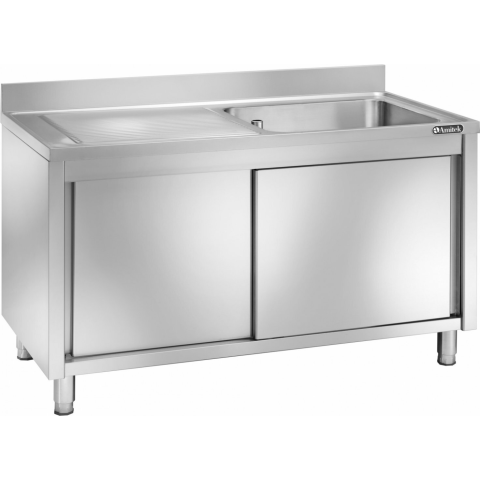 1 Medencés mosogató csepegtetővel, körben zárt tolóajtókkal, inox 304 kivitel, szintezhető lábakkal. Mérete:1200x700x950 Medence méret:500x500x300