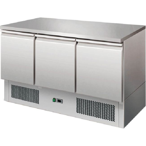 Kívül-belül rozsdamentes inox AISI 304 burkolat, 40 mm nagy sűrűségű hőszigetelés, kerekített belső sarkok, 3 db egymással szemben nyíló ajtó, statikus egylégteres hűtés, alulra szerelt kompresszor, kisfeszültségű vezérlő panel, automata leolvasztás és kondenzvíz párologtatás, ajtónként 1-1 db GN1/1-es műanyag bevonatos fém rács, állítható lábak. Hasznos űrtartalom: 368 liter Hűtés: +2/+8°C (max. +33°C/60% páratartalomig) Teljesítmény: 0,23 kW/23