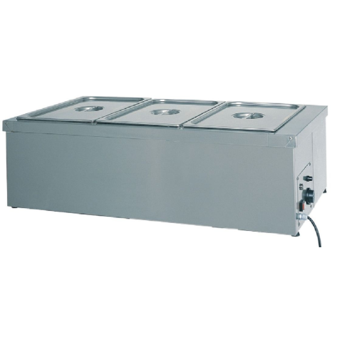 Száraz melegentartó, inox kivitel, termosztatikus vezérlés (0-90 °C), főkapcsoló, jelzőlámpa. Kapacitás: 3xGN1/1 max. 200 mm mély edényzetnek - GN edényzet nélkül Teljesítmény: 2 kW/230V-1N~ Mérete: 1100x600x320 mm