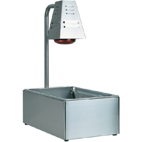 Inox kivitel, GN1/1-es semleges medencével, 1 db infa lámpával. Teljesítmény: 0,25 kW/230V-1N~ Mérete: 600x330x680 mm