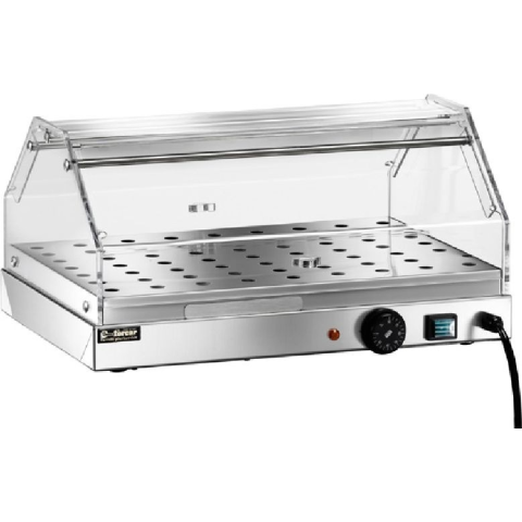 Inox kivitel, körben plexi burkolat, egy oldalt nyíló ajtó, alsó fűtés, párologtató tálca, perforált inox tároló betét, termosztatikus vezérlés (30-90 °C), főkapcsoló, jelzőlámpa. Teljesítmény: 0,25 kW/230V-1N~ Mérete: 500x350x250 mm