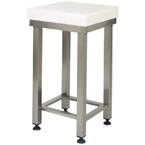 Inox zártszelvény váz, alsó merevítés, 80 mm-es polietilén vágólap, műanyag szintezhető lábak. Vágólap méret: 400x400x80 mm Külméret: 400x400x880 mm