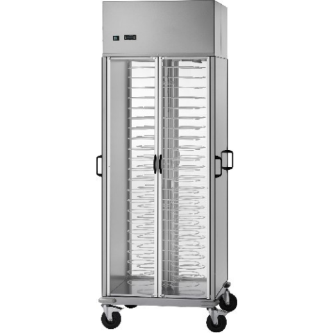 Fém váz, műanyag tartógyűrűk, 25 mm vastag burkolat, 4 db nyitható plexi ajtó, oldalsó fogantyúk, ventilációs hűtés, felső kompresszor, digitális vezérlés, gördíthető kivitel, 2 kerék fékezhető. Kapacitás: 88 db tányér Használható tányér átmérő: 250-310 mm Hűtés: +8/+12°C (max. +33°C/60% páratartalomig) Telj.: 0,46 kW/230V-1N~ Külméret: 750x780x2030 mm