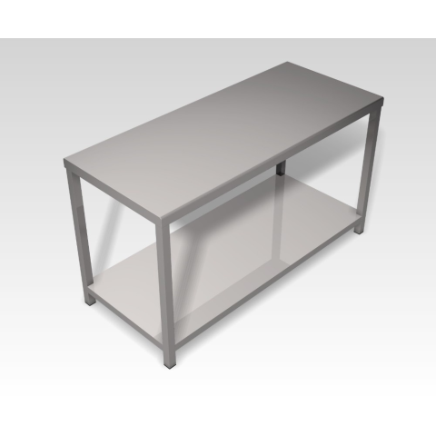 Inox 304 kivitel, rezgésmentes munkalappal, alsó polccal, műanyag szintezhető lábakkal. Mérete: 600x600x850 mm
