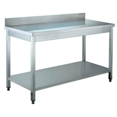 Teljesen rozsdamentes kivitel, 304 rm. acélból. Az 1,0 mm lemezből készült fedlapok rezgésmentesek, üreges magu háttal rendelkeznek. Az alsó polcok Omega megerősítésű kereszttartóval vannak megerősítve. Lábak vége műanyag és szintezhető. Mérete: 1200x600x850 mm