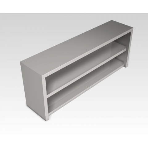 Inox kivitel, elől nyitott, körben burkolt, 1 db köztes állítható magasságú polccal Méret: 1800x400x650 mm