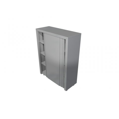 Inox 304 kivitel, tolóajtóval, körben burkolt, 4 db köztes állítható magasságú polccal Méret: 1600x700x1940 mm