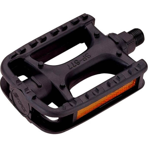 Pedál - rendeltetése városi kerékpár, cross kerékpár, gravel kerékpár és trekking kerékpár, nem rálépős, zár nélküli, anyaga műanyag, tüske nélküli, tömege 346 g, fekete kivitel A fekete műanyag Force 877 pedálok fényvisszaverőkkel ideálisak hegyi és trekking kerékpárokhoz, és műanyag golyóscsapágyakkal rendelkeznek. A pedálok súlya 346 gramm.A Force 877 fekete műanyag pedálo