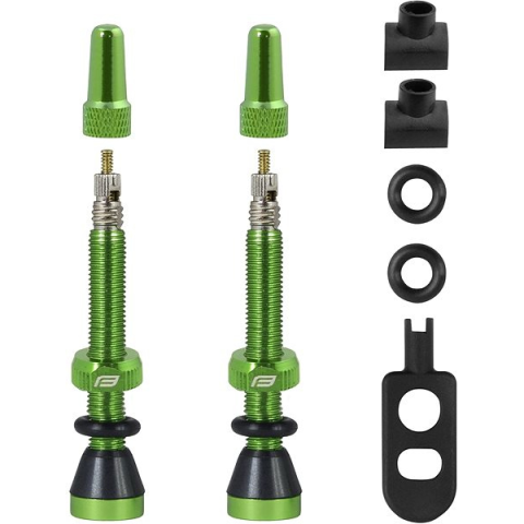 Szelep - galus szelepkészlet PV-hez, anyaga alumínium, hossza 44 mm, súlya 5,9 g, csomag tartalma 2 db alumínium galus szelep zöld színben, tömítőgyűrűk, peremanyák, műanyag kulcs a betéthez, 2 db tartalék tömítőgyűrű, 2 db tartalék négyszögletes foglalat A Force egy alumínium szelep készlet tömlő nélküli rendszerekhez. Jól jön az eredeti szelepek sérülése vagy elvesztése esetén. A szelepeken kívül a készlet tartalmaz tömítőgyűrűket, felni anyákat és