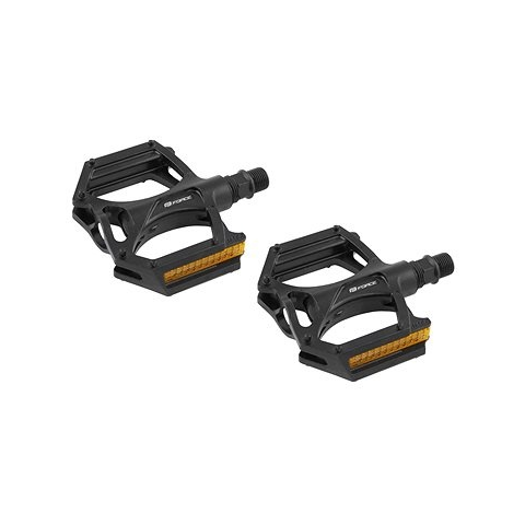 Pedál - rendeltetése BMX, downhill kerékpár, városi kerékpár és gravel kerékpár, platform, zár nélküli, anyaga alumínium, fix tüskék, tömege 335 g, fekete kivitel A BMX Force platformpedálok tartósságot és biztonságot ötvöznek mind a sport, mind a túrázó kerékpározáshoz. Erős csapokkal vannak felszerelve a jobb tapadás érdekében, valamint fényvisszaverőkkel, am
