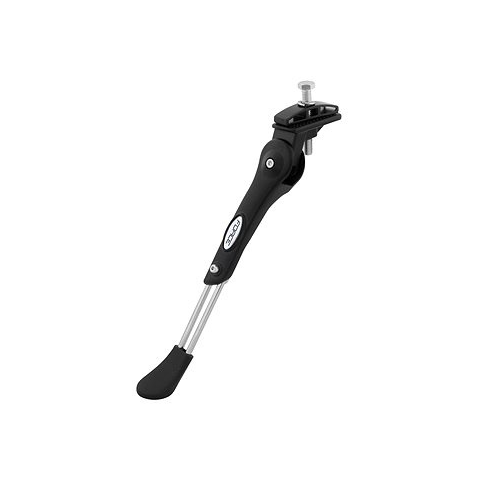Kerékpár állvány - hátsó, 24″ és 29″ -es kerékmérethez, csúszásgátló támasztóvég, anyaga alumínium, tömege 340 g A kerékpár könnyű és gyors leállítását falhoz támasztás vagy megfelelő hely keresése nélkül teszi lehetővé ez a váz alá szerelhető állvány. A 28-32 cm között állítható hosszúságnak köszönhetően problé