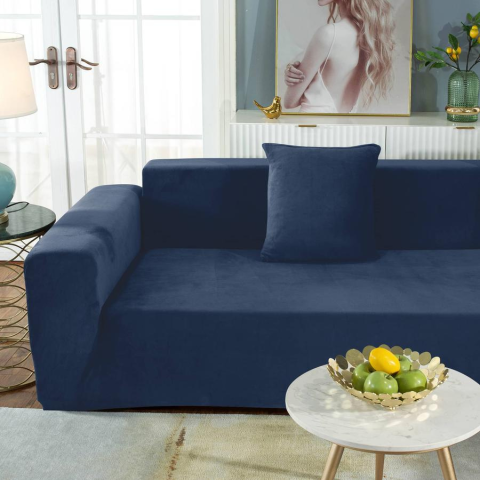 1 kép Forcheer Kanapé Huzat (bársonyos, 2 személyes, tengerészkék)