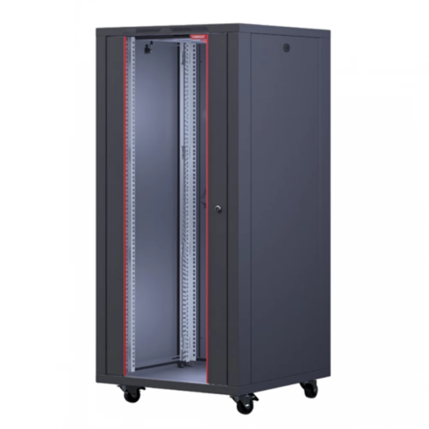 12U Interline 600x600 19" szabadon álló rack szekrény - RAL9005 fekete. Szintezőláb- (F041AYK) és görgőkészlet (F041TKR) külön rendelhető, a csomag nem tartalmazza alapból.