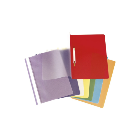 Gyorslefűző a lyukasztott lapok rendszerezésére és védelmére. Fém lefűző szerkezet műanyag leszorítóval. Az áttetsző, nem tükröződő borító látni engedi a dokumentum első oldalát. Hosszú címketartó, a címke kivételét ill. behelyezését segítő kivágással