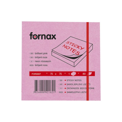 1 kép Fornax Jegyzettömb öntapadó, 75x75mm, 80lap, Fornax neon rózsaszín