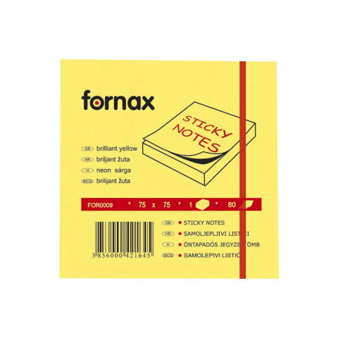 1 kép Fornax Jegyzettömb öntapadó, 75x75mm, 80lap, Fornax neon sárga