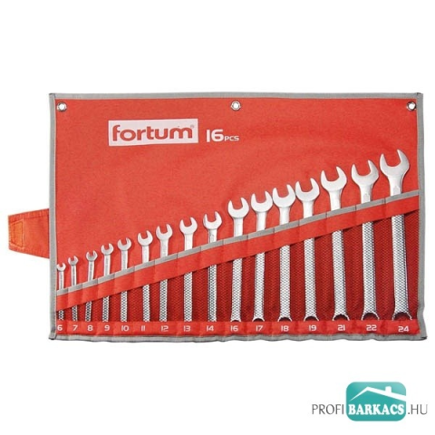 Fortum csillag-villás kulcs klt. 16db, 6-24mm 61CrV5, mattkróm, vászon tok
