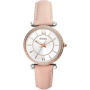 Karóra nőknek - analóg idő megjelenítés, óramű típusa quartz, kerek számlap, 24 órás mód, elegáns, római indexek, ásványi számlap, 50 m (5 ATM) vízhatlanság, a tok anyaga acél, a szíj anyaga bőr, a szíj színe bézs, cserélhető szíjjal, saját fejlesztésű rögzítés A kiváló minőségű Fossil Carlie ES4484 nőknek karóra alkalmas mindennapi viseletre. Az alapját egy 35 mm-es kerek számlap alkotja. Az effektív Quartz technológia hosszú élettartamot és pont