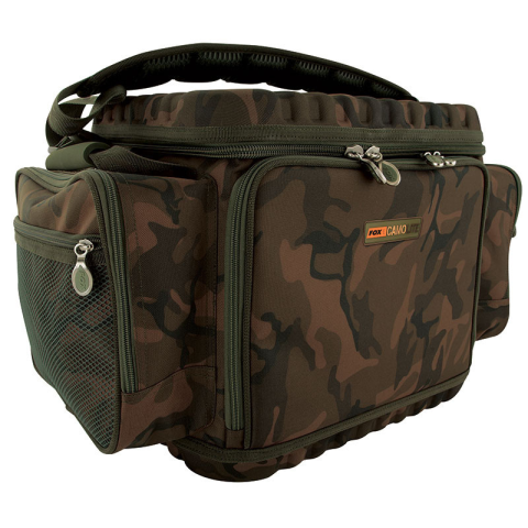 FOX CAMOLITE™ BARROW BAG- SZERELÉKES TÁSKA • Tökéletesen használható az Explorer talicskával, amelyen külön lehajtható panel lett kialakítva a táska tárolására • Tökéletes a felszerelés, csali és a ruházat tárolására • Merevített EVA markolattal • Eltá