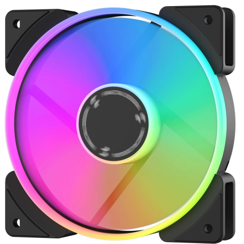 3 darab 120mm-es, vezérelhető ARGB világítású (lapátok és gyűrű) házhűtő ventilátor PWM szabályzással.