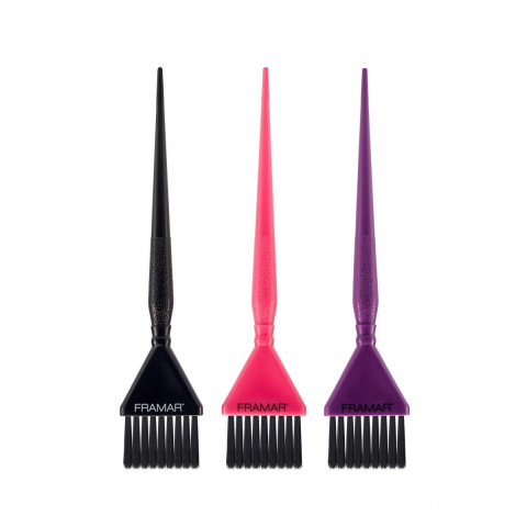 Framar Tri-Color Brush ecset szett, 3 részes - AccuSoft sörtékkel készült a hosszantartó minőség érdekében- Három különböző szín, rózsaszín, lila, fekete- Kiváló melír és tőfestési technikákhoz Framar Tri-Color Brush ecset szett, 3 részes - AccuSoft sö