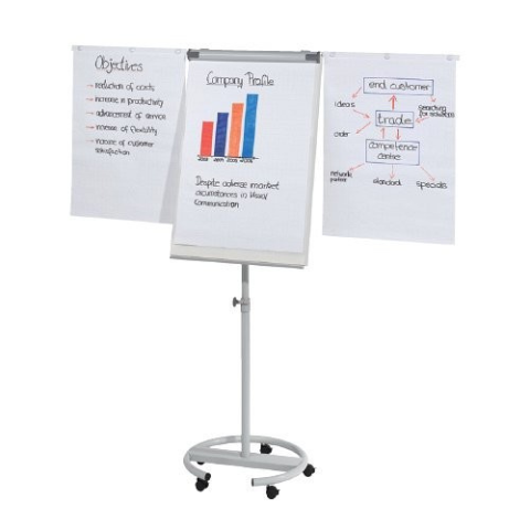 FRANKEN Mágneses felületű, írószertartós tábla. 180-200 cm magasságig állítható. A tábla 5 rögzíthető görgővel és 2 mágneses papírtartóval felszerelt. Mérete: 68 x 105 cm.