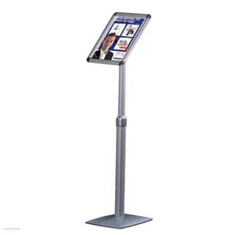 FRANKEN Univerzális ár- és információs állvány. Állítható magasság az A/4 esetében 86,5 és 125 cm, az A/3 esetében 91 és 131 cm között. Állítható fekvő vagy álló formátum, valamint változtatható dőlésszög. A billenő keretszerkezet lehetővé teszi az inf