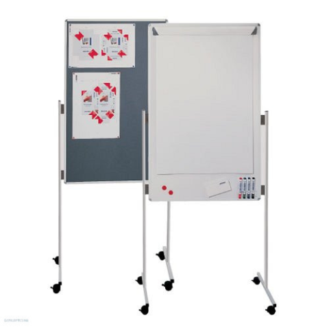 A termék három prezentációs eszköz egyben! Textiltábla szürke filc bevonattal. Írható, szárazon és nedvesen törölhető, mágneses fehértábla állítható flipchart papír tartóval. Könnyen mozgatható, a görgők rögzíthetők. Táblaméret: 76 x 121 cm, teljes mére