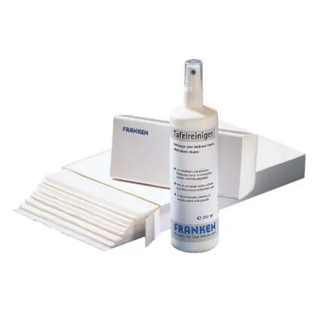 FRANKEN 1 db mágneses táblatörlő 100 ív törlő papírral, 1 db 250 ml-es tisztítóspray.