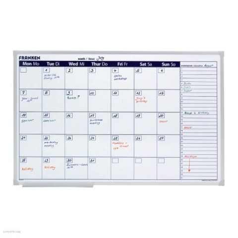 Havi tervező tábla, amelyre sok információt felírhat, és a tábla jobb oldalán arra is van lehetőség, hogy a következő hónapot is előre tervezze. Mágneses, írható, szárazon törölhető. Használat előtt javasolt a táblafelület tisztítása kifejezetten táblat