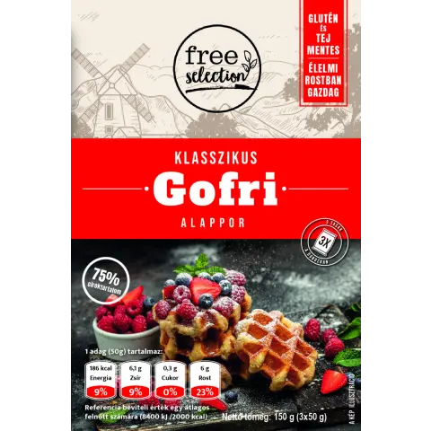 Free selection klasszikus gofri alappor 3x50g 150 g Free Selection Klasszikus Gofri keverék 3 * 50g Innovatív márka kategóriában Magyar Brands díjazott a Free selection termékcsalád Ez a 75% cirokliszt alapú lisztkeverék tökéletes gyors és egészséges