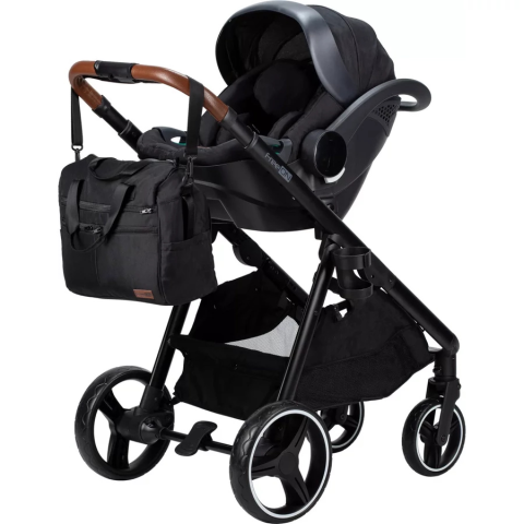 A csomag mindent tartalmaz: egy könnyű vázra illeszthető mózeskosarat, hordozót és sportrészt az újszülöt
