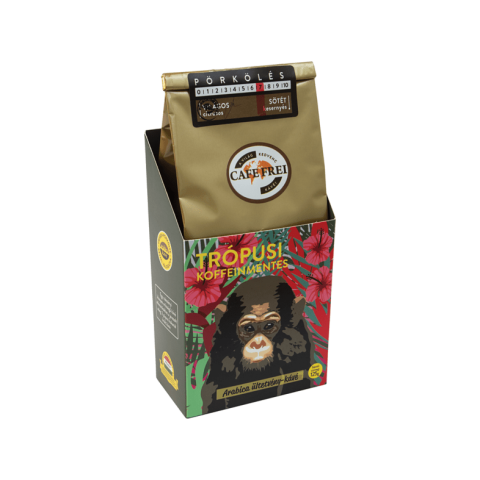 Trópusi koffeinmentes kávénk nem kémiai úton, hanem szinte „természetesen” koffeinmentes. Kis ültetvényeken, alacsony koffeintartalmú cserjéken termesztik. Szüreteléskor azonnal vízben áztatják és „kimossák”, utána magozzák, és végül két hétig szárítják. Mi hosszan, 25 percig pörköljük, és így a maradék koffein is távozik belőle! Egy csészényi közepes erősségű kávé elkészítéséhez a javasolt adag: 2 púpos kiskanál őrölt kávé
