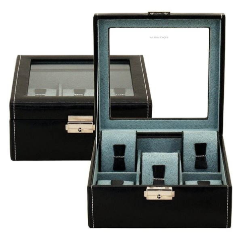 Óratartó doboz - méretei: 18 x 18 x 8,5 cm Luxus doboz menteni hat darab órák, nem használja azt. Kiváló minőségű anyagok, a belső rész borítja bársony megóvja a óraüveggel zárható fedél biztosítja a biztonságot és a láthatóságot. Az elegáns d