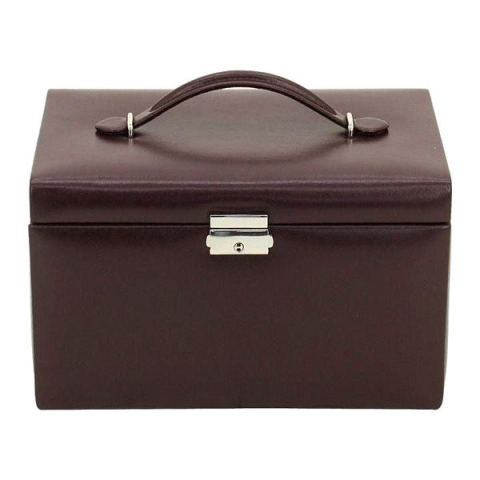 Ékszeres doboz - szintetikus bőr, koffer, zárható, 4 szintes, 7 rekesz, mérete 24 × 15 × 16 cm (Ma×Sz×Mé), barna kivitel A Friedrich Lederwaren márka az eredeti és fényűző német minőséget képviseli. A világhírű márka tökéletes formatervezésével és részletek iránti érzékenységével tűnik ki. A gyártás