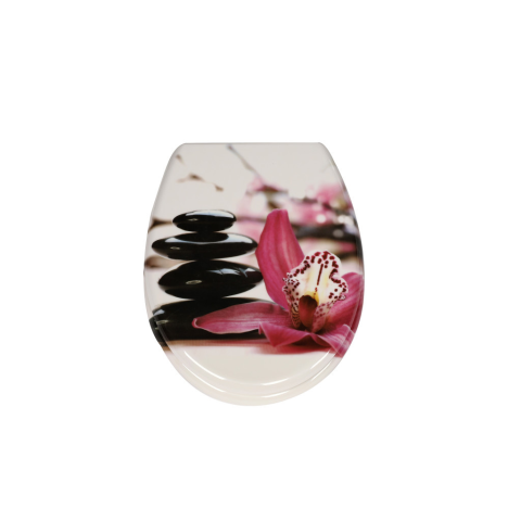 Dekoratív, nyomtatott fóliás Duroplast WC ülőke rozsdamentes acél zsanérral. A prémium minőségű, nagy sűrűségű duroplast anyag hosszú élettartamot, karcálló és higiénikus felületet biztosít. A rozsdamentes SS304 acél zsanér stabil, korrózióálló és biztos
