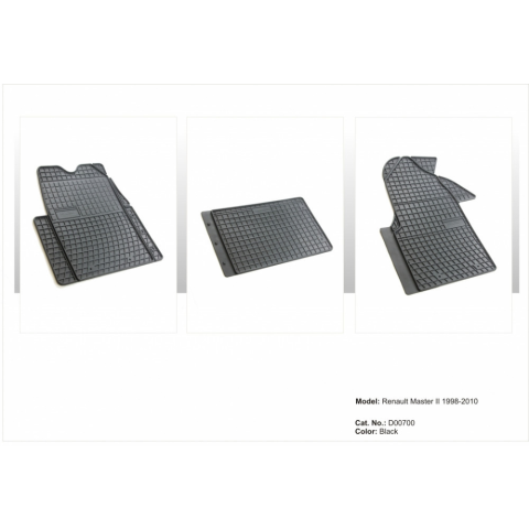 Sarokerősített gumiszőnyeg garnitura Renault Master II 2003-2010 (D00700)A prémium fekete színű Sarokerősített gumiszőnyeg garnitura Renault Master II 2003-2010 (D00700) az autó kárpitját gyári minőségű anyagból védve megőrzi újszerű állapotát.Sarok erősí