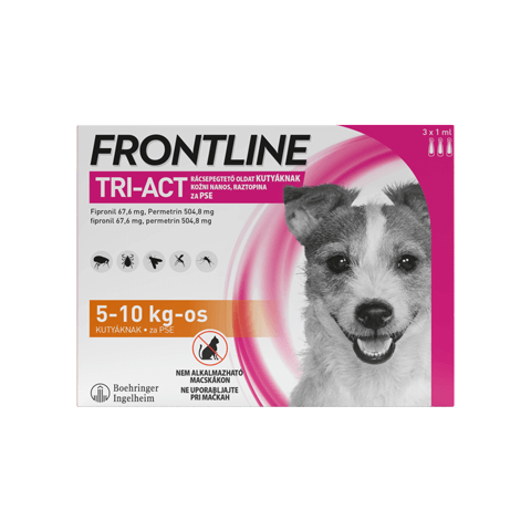 Frontline Tri-act rácsepegtető oldat 5-10kg közötti testtömegű kutyusok számára. 3db-os kiszerelés.
