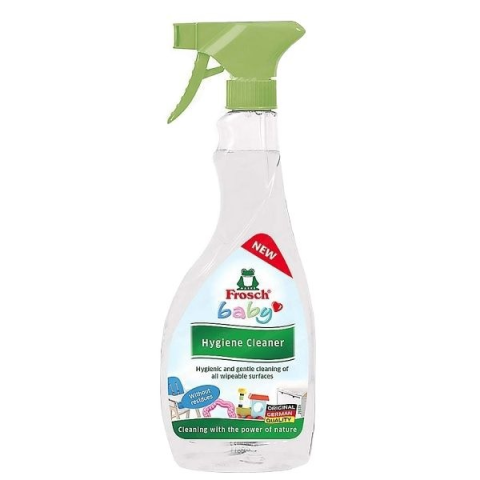 Frosch Baby Felülettisztító spray, 500 ml A Frosch Baby felülettisztító spray a legújabb terméke a Frosch Baby termékcsaládnak. Dermatológiailag tesztelt és hipoallergén növényi eredetű összetevőinek köszönhetően teljesen bababarát de ugyanakkor hatékony
