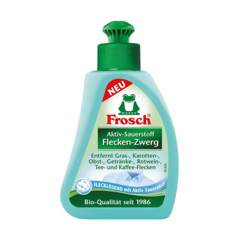 Frosch folt előkezelő aktív oxigénnel 75 ml-es kiszerelésben. Hatékonyan távolítja el a textíliákból a fű, virágpor, sárgarépa, gyümölcs, üdítőital, vörösbor, tea, kávé foltokat. Alkalmas fehér és színes ruhákhoz, kíméletes a színekhez. Babaruhákhoz és ba