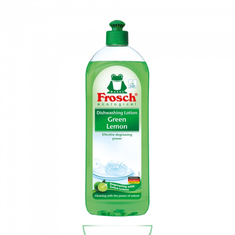 Frosch mosogatószer zöldcitrommal 750 ml-es kiszerelésben. A zöld citrom héjából származó természetes összetevőinek köszönhetően hatékonyan távolítja el a zsíros szennyeződéseket mosogatás közben. Bőrsemleges pH-értékű, bőrgyógyászok által tesztelt termék